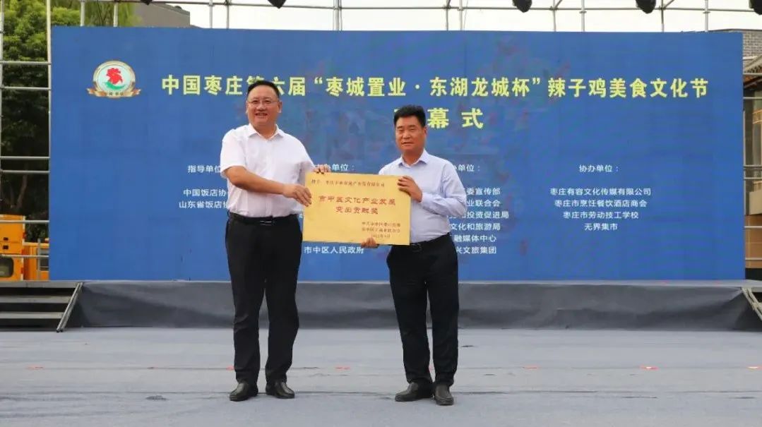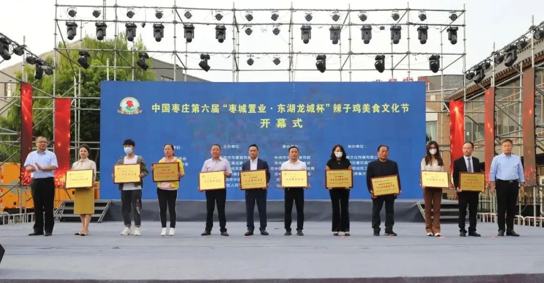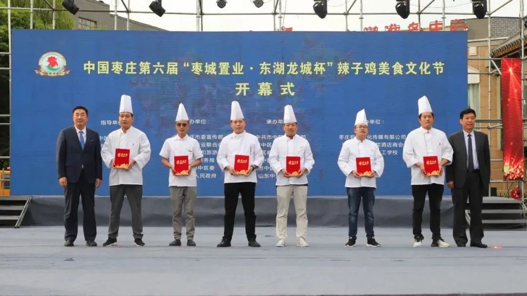 開幕式上,中國飯店協(xié)會副會長、中國飯店協(xié)會名廚委員會主席石萬榮發(fā)來了祝賀視頻。企業(yè)家代表山東棗城置業(yè)有限公司董事長殷允夷致賀詞。與會領(lǐng)導(dǎo)分別為“全雞宴”美食賽獲獎團(tuán)隊(duì)、首屆“慢品市中”美食評選獲獎單位、市中區(qū)文化產(chǎn)業(yè)發(fā)展突出貢獻(xiàn)獎獲獎單位頒獎,并共同啟動第六屆辣子雞美食文化節(jié)。