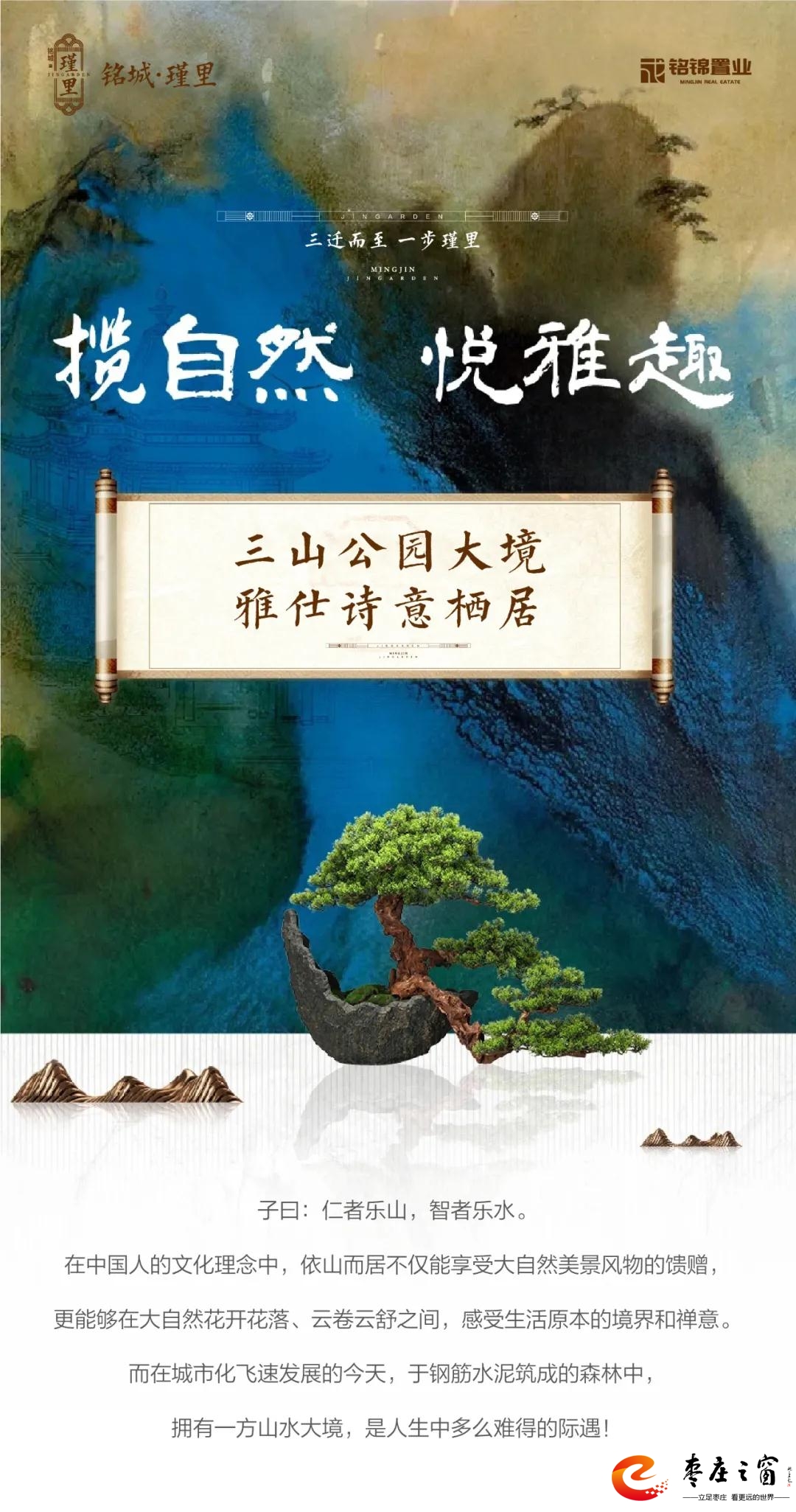 在山水之間,尋求生活的初心;在自然生態(tài)中,摒棄生活的雜念。三山環(huán)抱,締造大美意境,新仕族生活更添雅致樂趣。銘城瑾里,于山水間筑造人文雅居;濃蔭秘境里,看云卷云舒,花開花落;在愜意悠然中享受最自然詩意的美好時(shí)光。