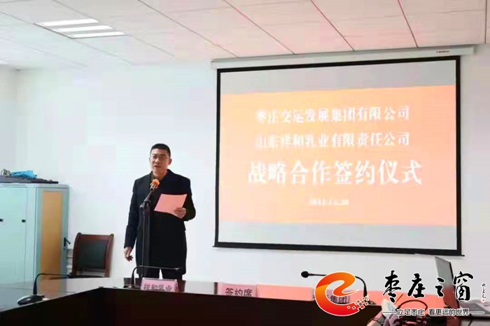 時近元旦,一元復始,萬象更新。12月20下午,山東祥和乳業(yè)有限責任公司與棗莊交運集團戰(zhàn)略合作框架協(xié)議簽約儀式在棗莊交運集團三樓會議室舉行。市國資委黨委委員、副主任孫晉卓,祥和乳業(yè)董事長闞久剛,棗莊交運集團黨委書記、董事長王賀龍出席簽約儀式并分別做了發(fā)言。
