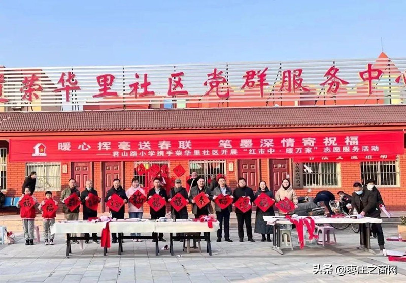 1月11日下午,接到區(qū)融媒體中心的電話,《棗莊之窗》小編驅(qū)車來到榮華里社區(qū),感受這里不一樣的年味氣氛。來到社區(qū)大院,看到書法愛好者、社區(qū)紅馬甲、學(xué)生們,還有周邊的社區(qū)居民早早來到大院忙乎了起來,你搬案桌,我裁紙,他研墨水,準備著一場書寫春聯(lián)的筆墨盛會。